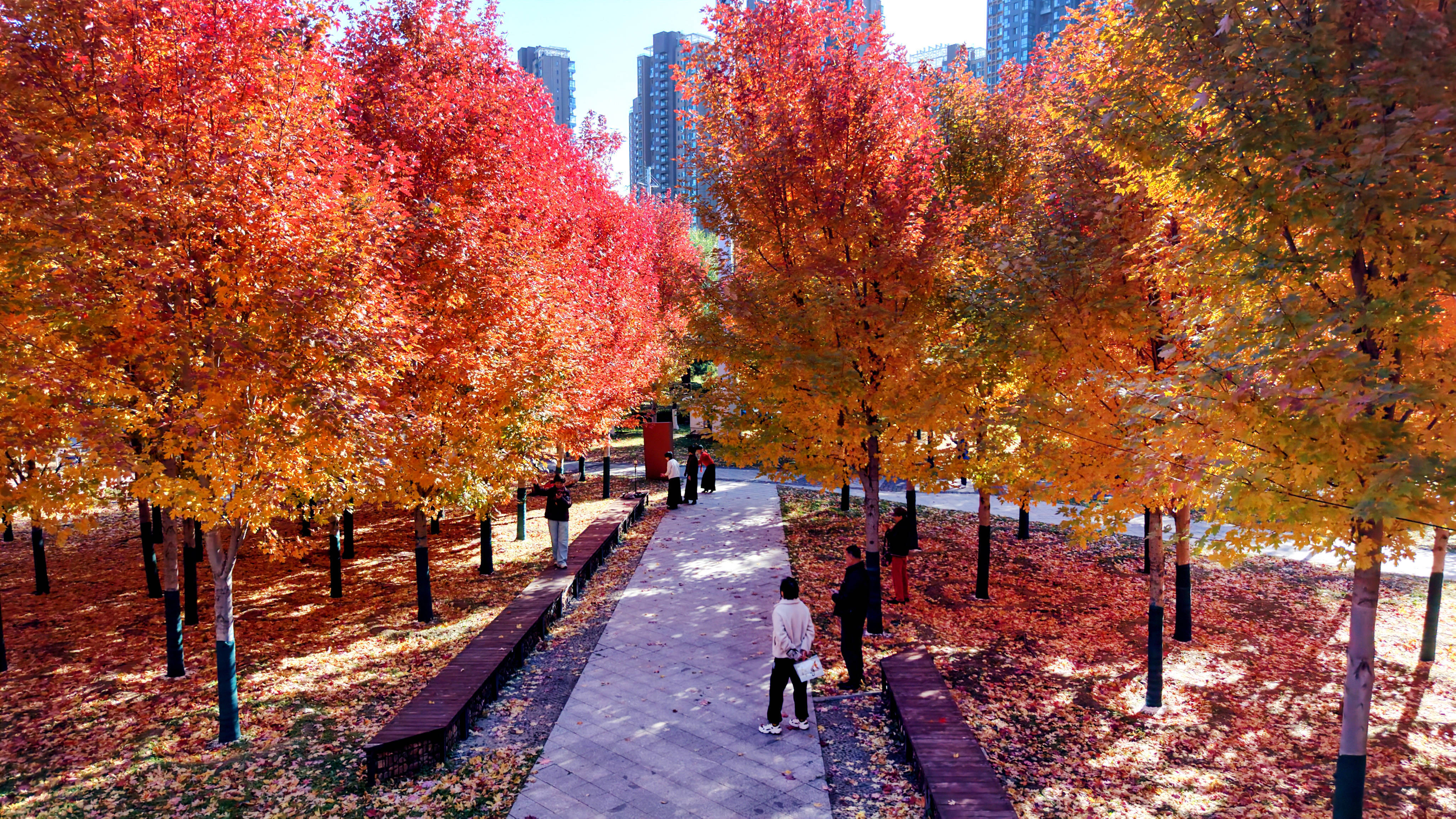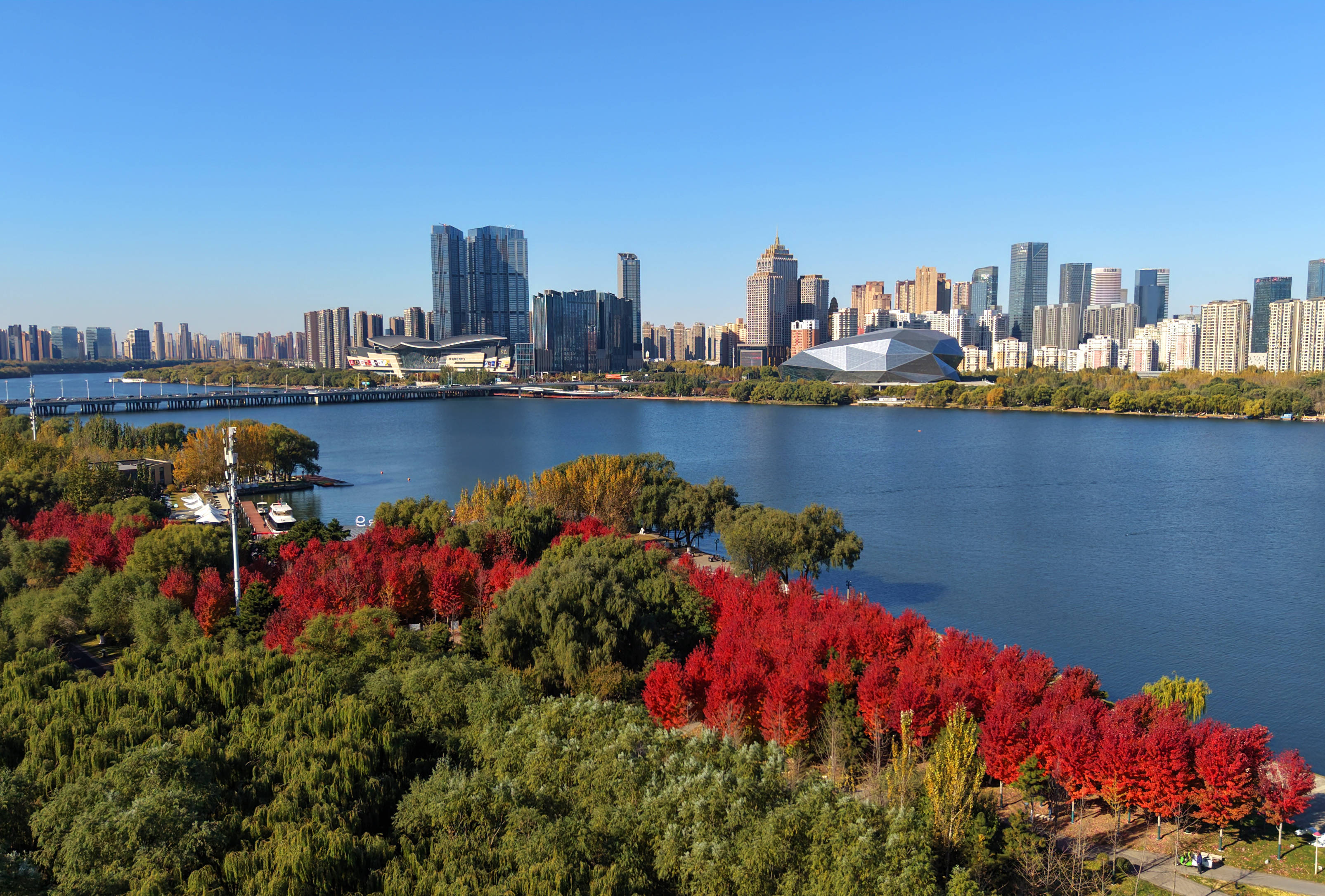 近日,位于辽宁省浑河南岸的沈阳奥林匹克公园秋色正浓,宛如打翻的调色板。