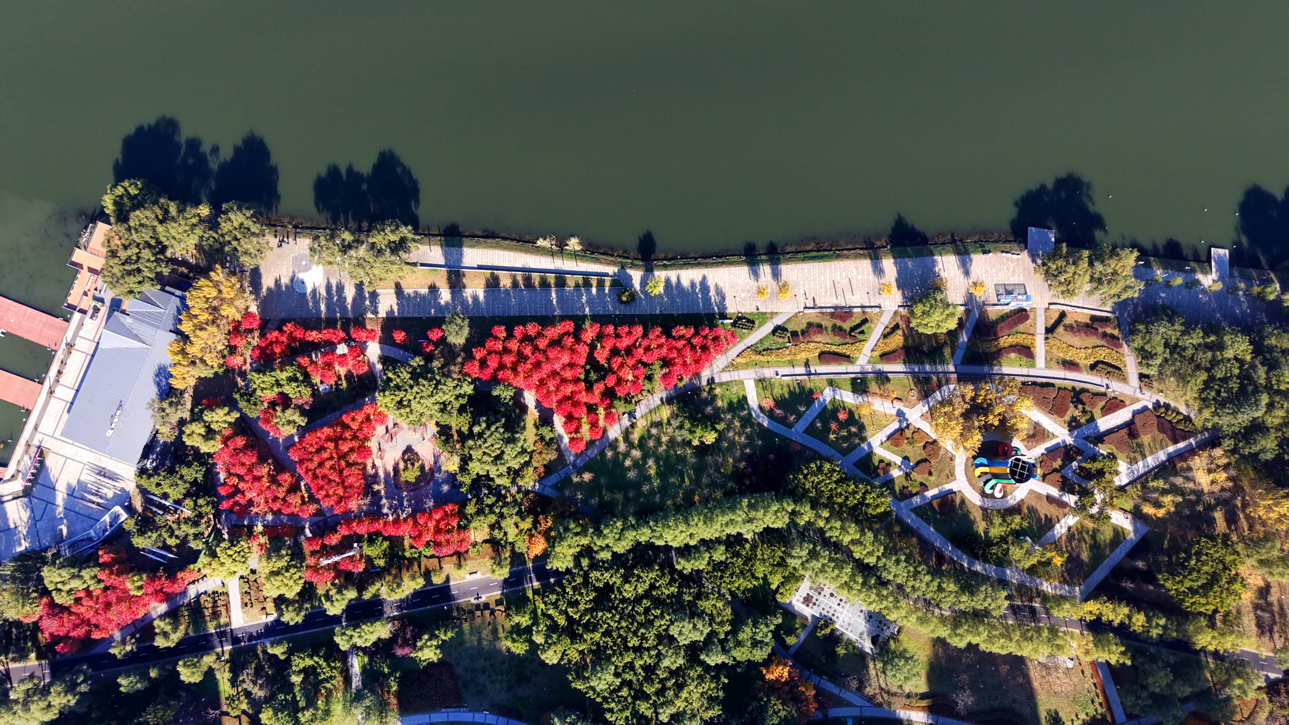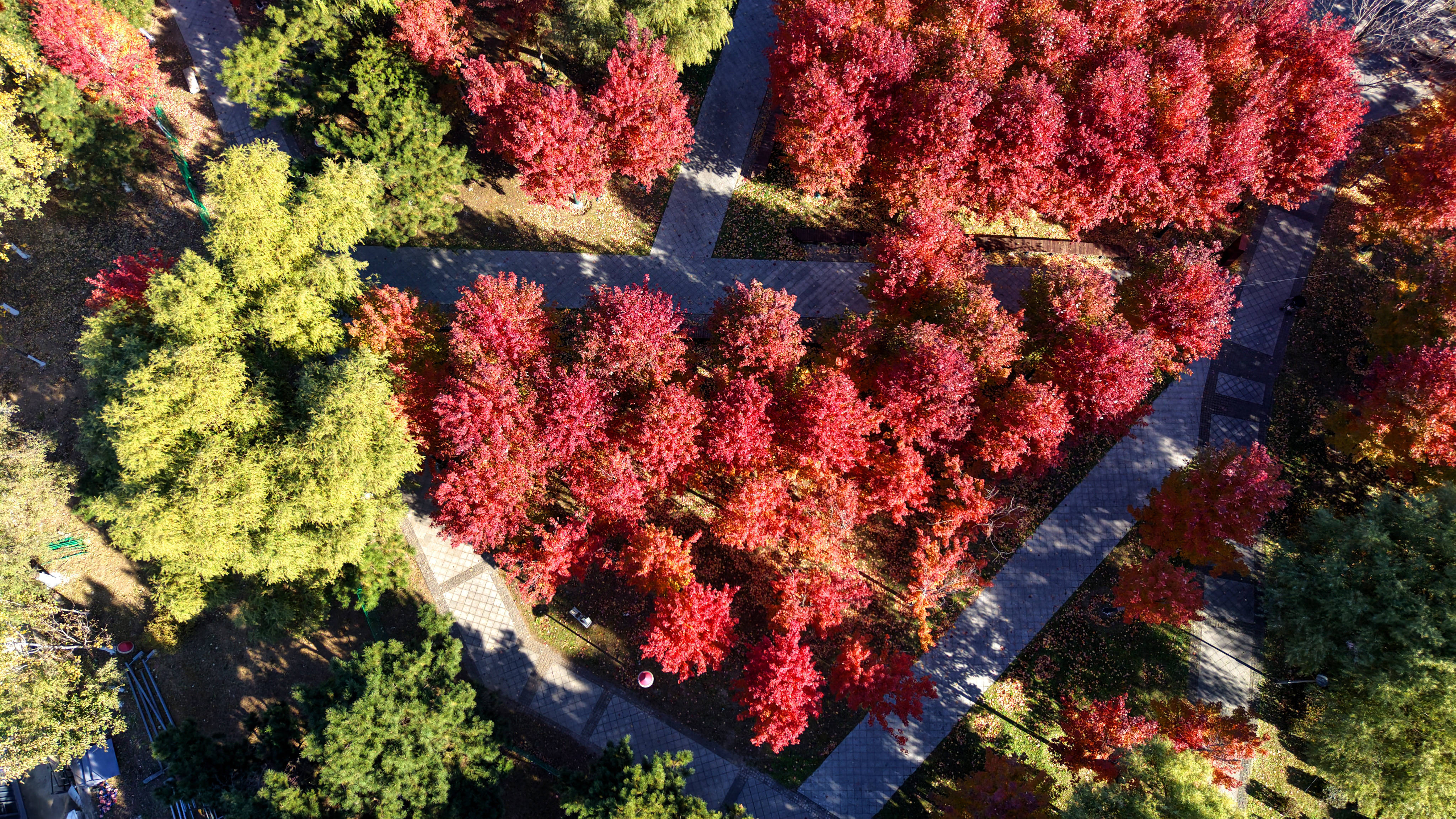 以上图片:2025年10月30日拍摄的辽宁省沈阳奥林匹克公园秋景。(无人机照片)CICPHOTO/黄金崑 摄